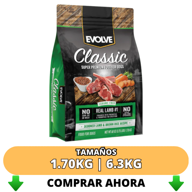 El alimento para perros EVOLVE CLASSIC LAMB , BROWN RICE RECIPE DOG FOOD tiene toda la nutrición necesaria para una vida feliz y saludable. Este alimento premium rico en nutrientes contiene proteínas de alta calidad, carbohidratos complejos, vegetales, minerales, vitaminas, aceites y grasas. Debido a que nos preocupamos por la calidad de nuestra comida para perros, elegimos hacer del cordero real el ingrediente # 1 , que apela a los instintos y antojos ancestrales naturales de su perro. ¡Queremos los mejores ingredientes de la naturaleza para tu mejor amigo! Por lo tanto, puede sentirse seguro de alimentar a su perro con este alimento superior y saludable con un sabor naturalmente delicioso.