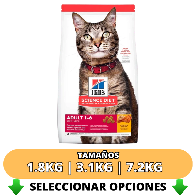 HILL'S SCIENCE PLAN Alimento para gatos adultos está especialmente formulado para proporcionar la cantidad de energía adecuada para favorecer el peso ideal en gatos adultos de 1 a 6 años de edad. Elaborado con ingredientes de alta calidad fáciles de digerir.