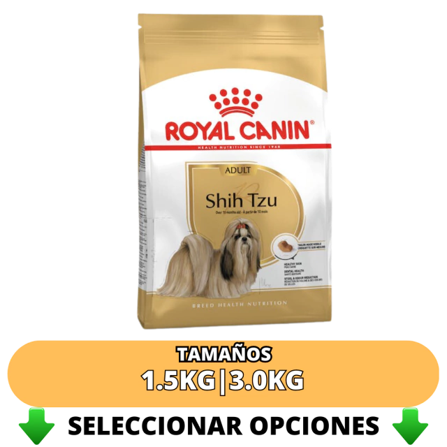 Shih Tzu Adult de ROYAL CANIN® es un alimento indicado para perros de la raza shih tzu de más de 10 meses y ha sido específicamente formulado teniendo en cuenta las necesidades nutricionales de tu perro adulto de esta raza. Shih Tzu Adult de ROYAL CANIN® aporta una combinación exclusiva de nutrientes que ayudan a tu perro a mantener una buena salud cutánea; algo que, a su vez, influye positivamente en la salud de su pelaje. Esta fórmula incluye ácidos grasos omega 3 EPA y DHA, así como un aporte enriquecido de aceite de borraja; estos ácidos grasos tienen un papel importante en la nutrición de la piel y pelaje de tu perro. La solución nutricional adaptada de Shih Tzu Adult de ROYAL CANIN® también aporte quelantes de calcio, que contribuyen en el mantenimiento de la higiene dental de tu perro. Shih Tzu Adult de ROYAL CANIN® también favorece una buena función digestiva, lo que contribuye a reducir el volumen y olor de las heces. La croqueta de Shih Tzu Adult de ROYAL CANIN® ha sido específicamente diseñada para los perros de esta raza. Su forma y tamaño han sido especialmente diseñados para facilitarle la prensión y la masticación.